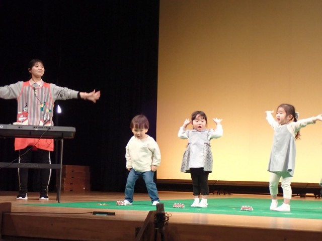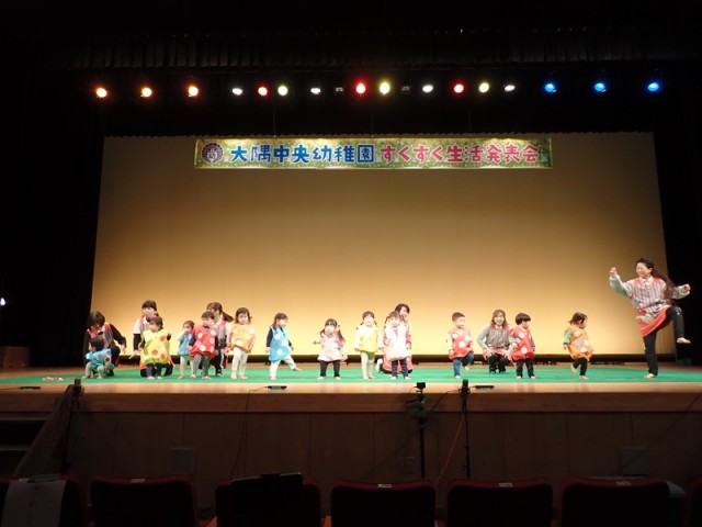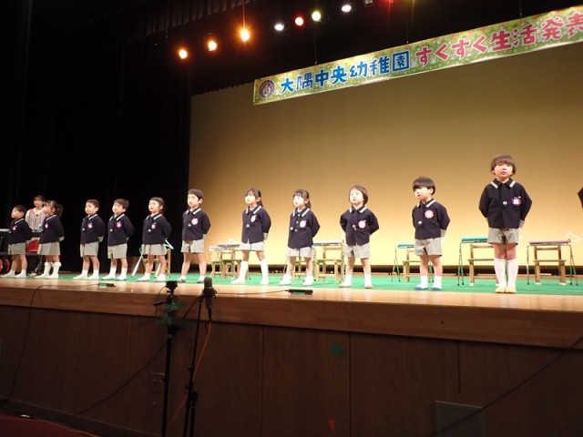 本日は、すくすく生活発表会でした。 大きなステージで、緊張や不安もたくさんあったと思いますが、笑顔いっぱいで楽しく歌ったり踊ったり、真剣な表情で合奏や体操をしたりと一人一人の子どもたちが輝いていました。日頃の練習の成果を十分に発揮し、子どもたちの成長が見られ嬉しく思います。頑張ったお子さまをたくさんほめてあげてください。 たくさんの温かい拍手をありがとうございました。