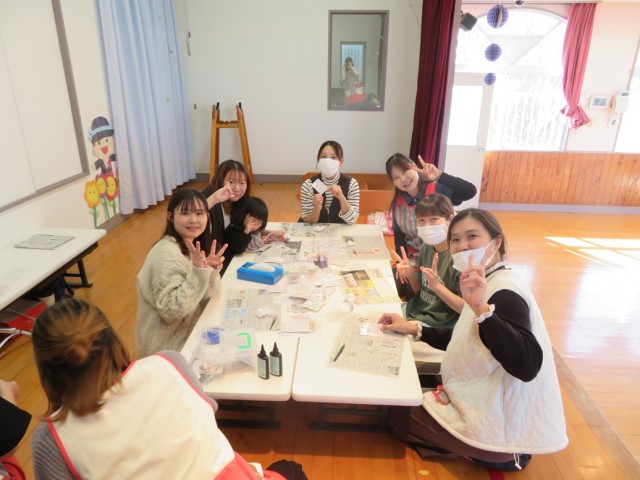 本日は5組10名の方々にお越し頂き、お母様方は「レジンのキーホルダー作り」お友だちは「先生たちとふれあいあそび」を楽しみました。