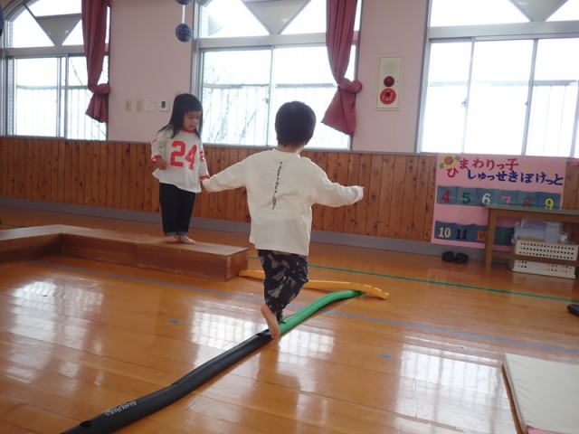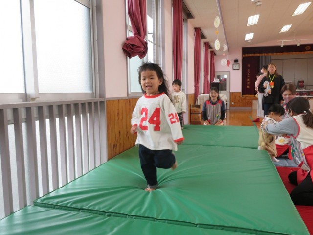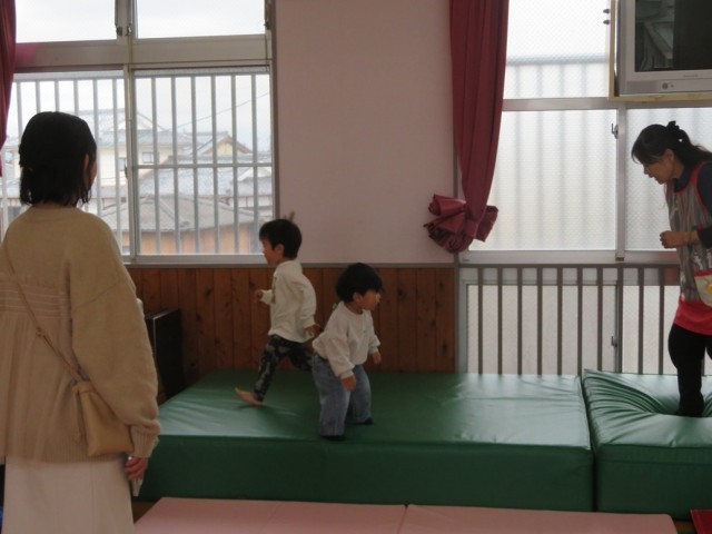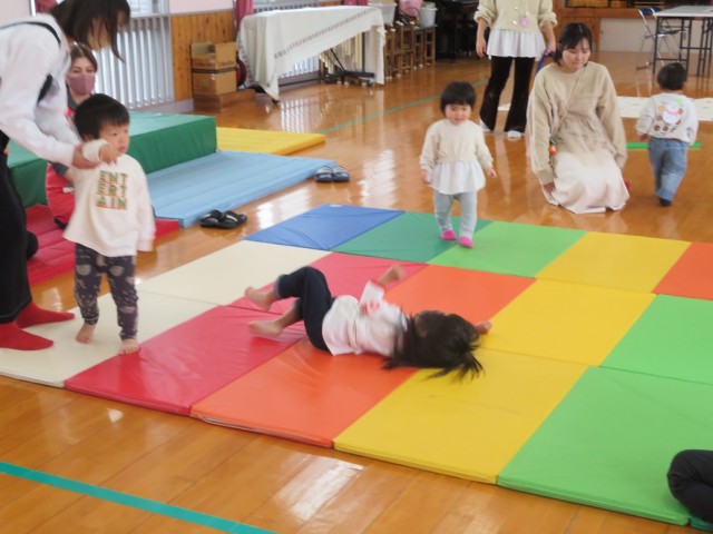 6組の親子に来ていただき、子ども達はサーキットあそびをして体を思いっきり動かして楽しみました。