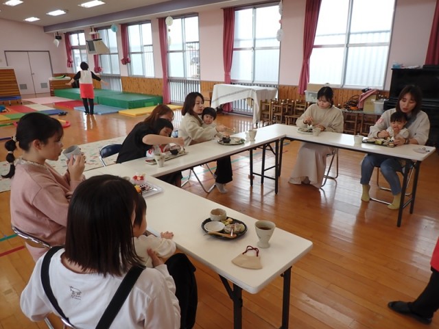 お母様方は一年間のひまわりっ子について、いろいろお話していただきながら「ほっと一息お茶タイム」で楽しんでいただきました。